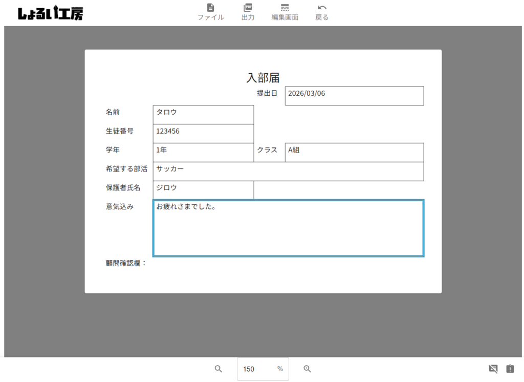 これでテンプレート作成は完了となります。用途に応じてPDF出力、入力画面から作成したテンプレートに値を入力してください。