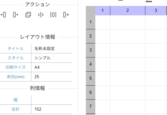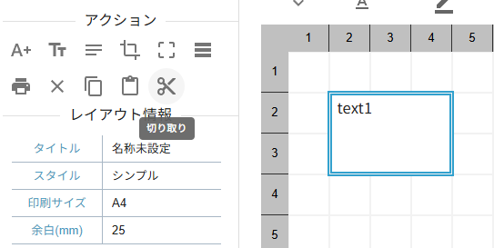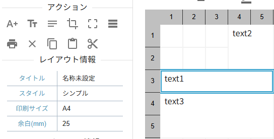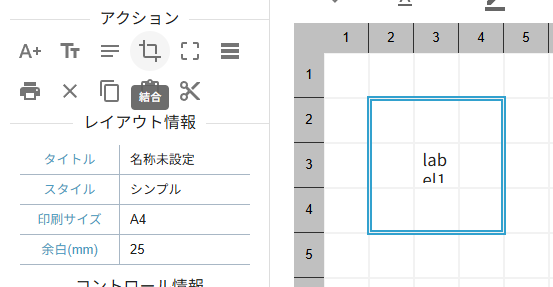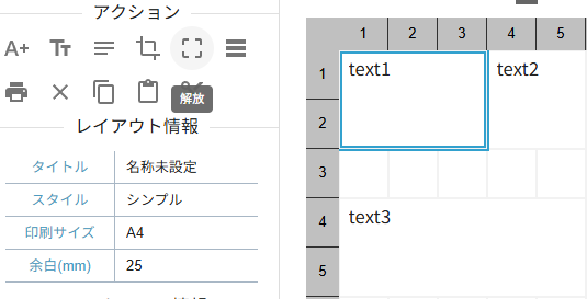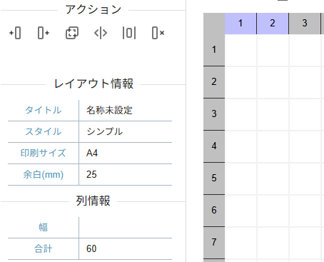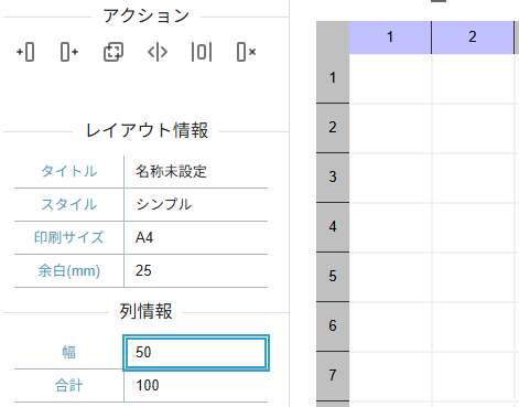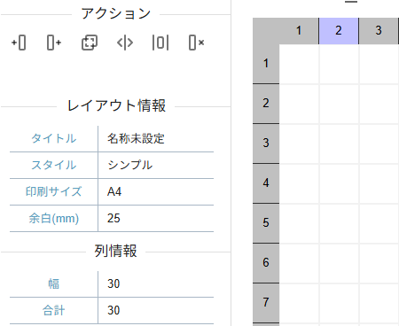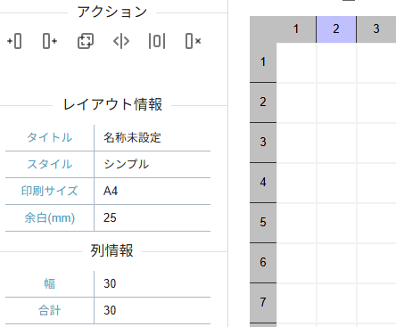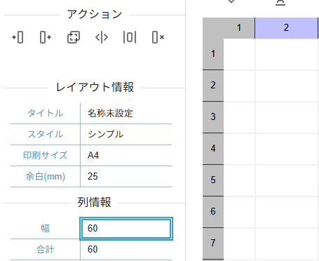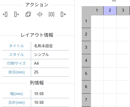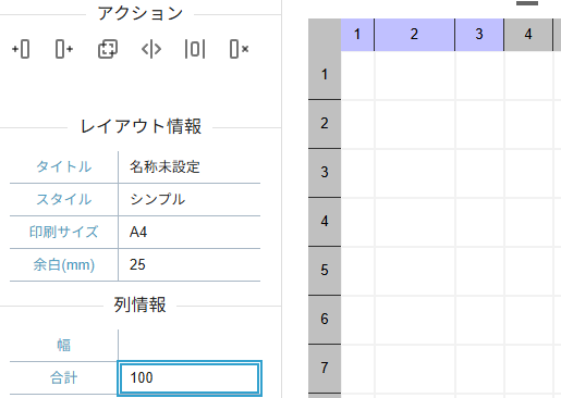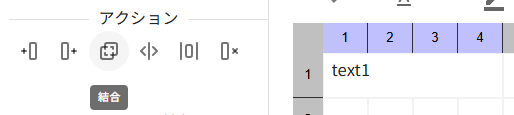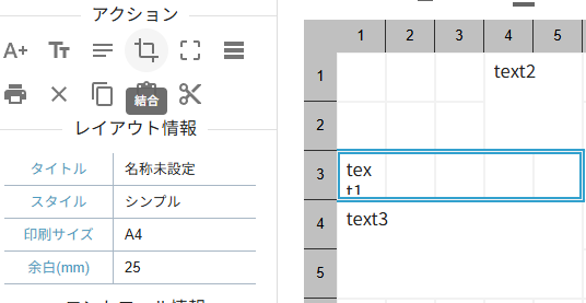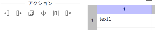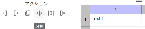 行列にはアクションパネルに便利な機能が備わっています。その中でも「結合」、「分割」はレイアウト編集において便利な機能となるため適宜ご利用ください。