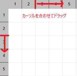 行列は灰色のセルの境界をドラッグすることで伸び縮みすることができます。